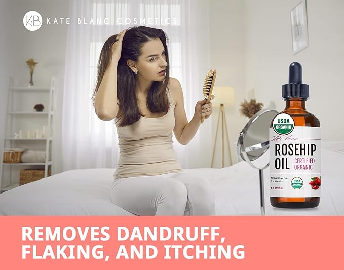 Kate Blanc Cosmetics Rosehip Oil for Face & Skin (4oz, Organic, Pure, Cold Pressed) Rosehip Seed Face Oil for Facial & Gua Sha Massage