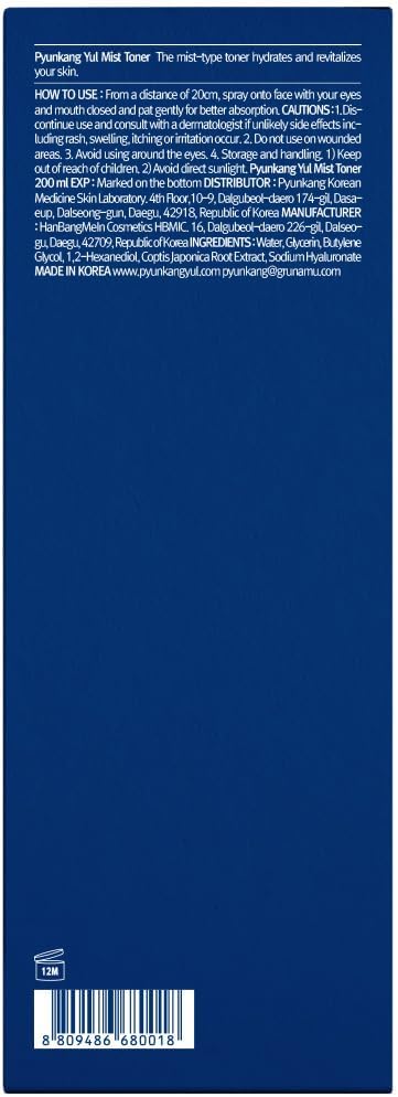 Pyunkang Yul Facial Mist Toner 6.8 Fl. Oz - Face Moisturizer Skin Care Korean Spray Toner for Oily and Combination Skin Types - Astringent for Face Certified as a Zero-Irritation - Watery Texture