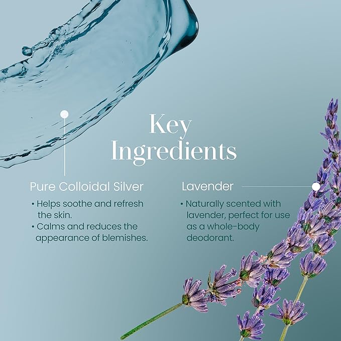 • 🌿 Infused with Colloidal Silver: Experience the power of colloidal silver combined with the soothing properties of lavender to maintain soft, healthy, and radiant skin.
