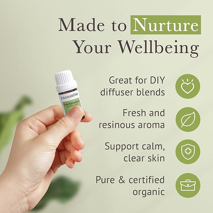 • 100% PURE ESSENTIAL OIL - This frankincense essential oil is distilled and pressed from solely sustainably harvested organic plants. All of Pranarom's products are sourced from organic farms from across the globe to provide only the finest, organic ingredients.