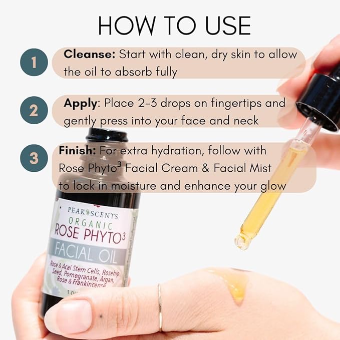 • HIGH QUALITY: Peak Scents is committed to providing high-quality products. This Organic Rose Phyto Facial Oil is no exception. The face oil is a premium skincare product that delivers excellent results, especially when paired and layered with our facial cream.