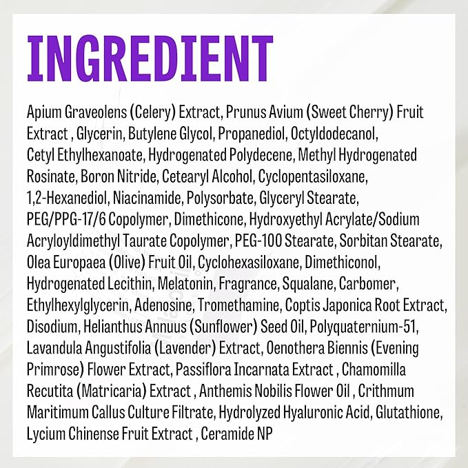• RESILIENT & REVITALIZED SKIN Infused with 50,000 ppm of Melatonin Liposomes and Adenosine, this facial moisturizer enhances skin elasticity and resilience which offers the same revitalizing benefits as a restful night's sleep, leading to a younger-looking and well-nourished complexion.