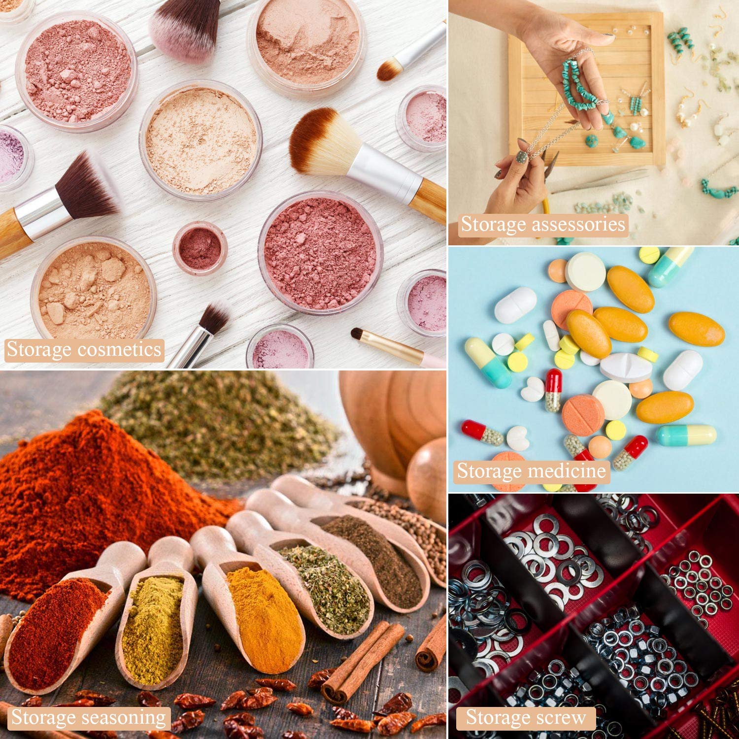 • Multi Ppurpose: The small containers are also suited to hold samples of loose leaf teas, spices, small jewelry, nail decortaion and much more