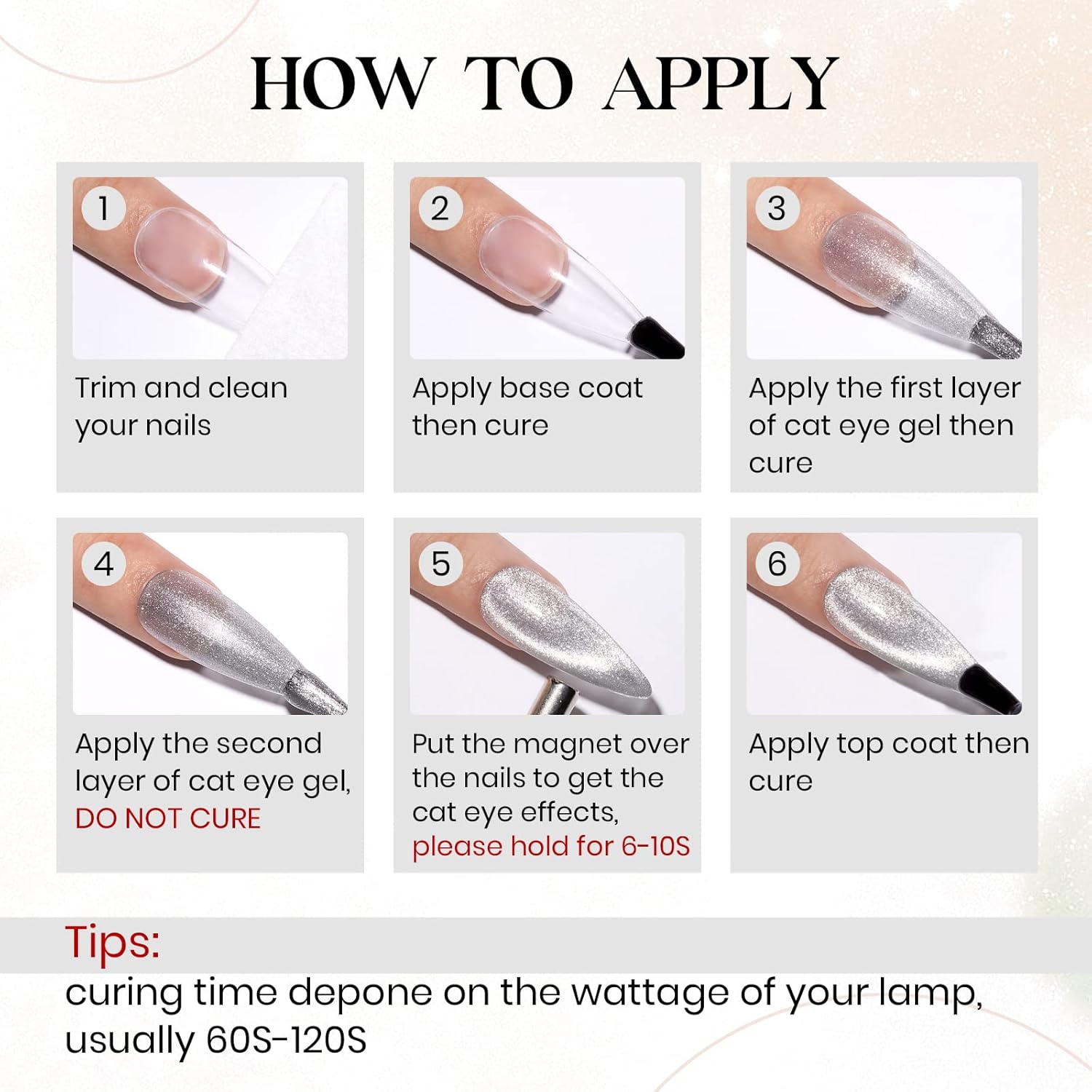 • Usage Instructions: Smoothie Cat Eye Nail Polish is different from regular nail polish, please follow the tips of the description. If you are beginner, we suggest you learn more from the videos that you can get a more satisfying effect