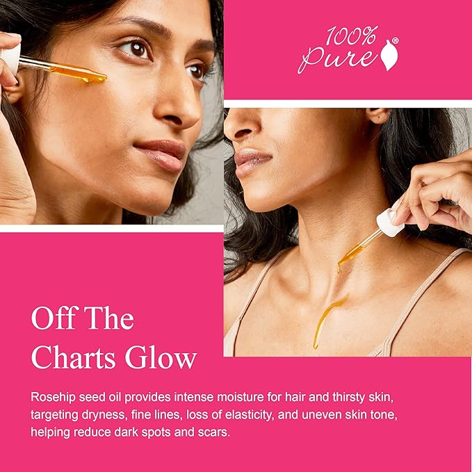 • OFF THE CHARTS GLOW - Rosehip seed oil provides intense moisture for thirsty skin, targeting dryness, fine lines, loss of elasticity, and uneven skin tone, helping reduce dark spots and scars.