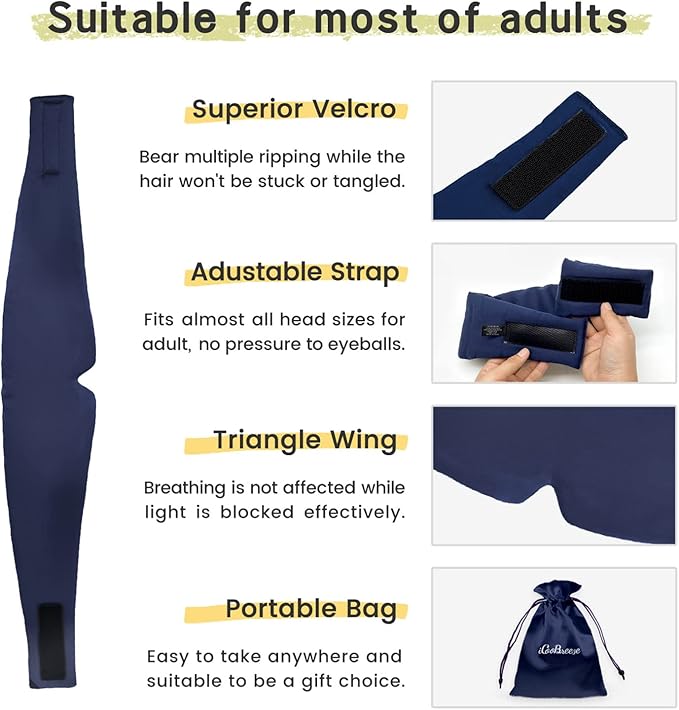 • Block Out Light Perfectly: With the large size design, and the particular triangle wing, the blindfold perfectly blocks out all light, so you will enjoy a good dream all night. The travel eye mask is light weighted thus you can take it anywhere, wear it anytime to obtain a sound sleep whenever you want