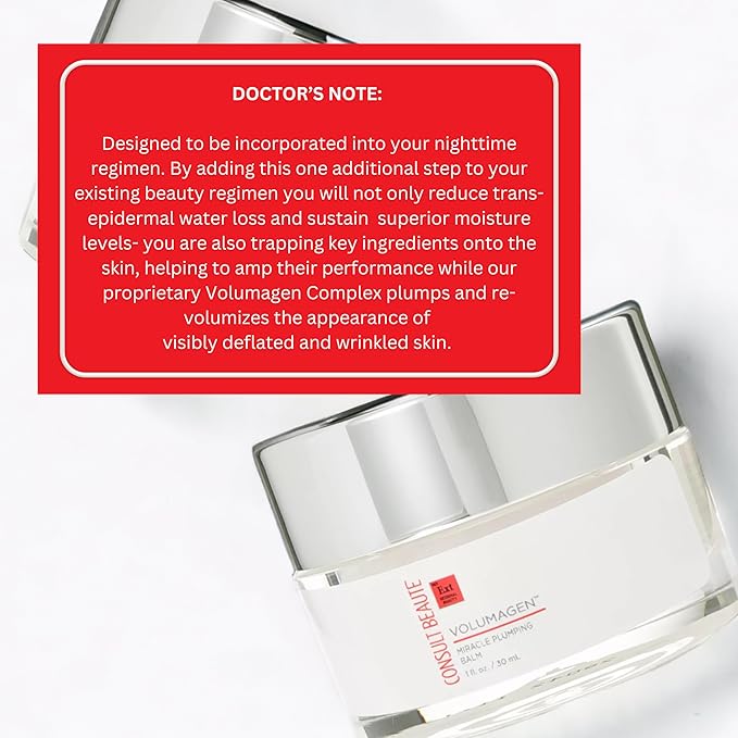 Consult Beaute Volumagen Miracle Plumping Barrier Balm - Facial Moisture Slugging - Overnight Deep Skin Hydration - Dry Skin - Hyaluronic Acid - Petrolatum Free - Lanolin Free - Mineral Oil Free 1 oz