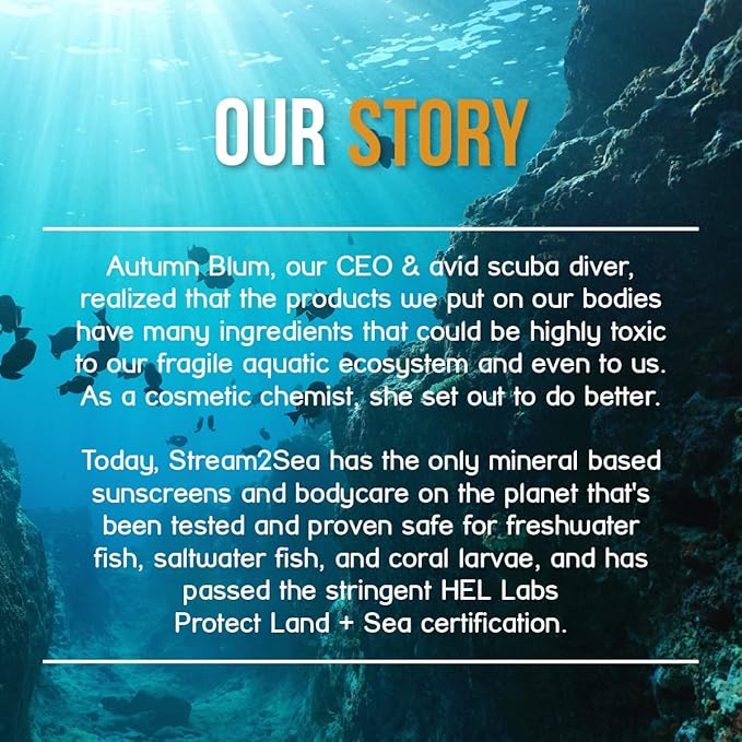 • OUR FORMULA IS REEF SAFE - Many chemical-based sunscreen are toxic to coral reefs and fish. Our product is a natural and eco-friendly mineral sunscreen. This has been tested and proven safe for humans, freshwater and saltwater marine life. Even our tubes are eco-conscious - all Stream 2 Sea containers are made from Sugarcane Resin. Happy seas and happy skin indeed!