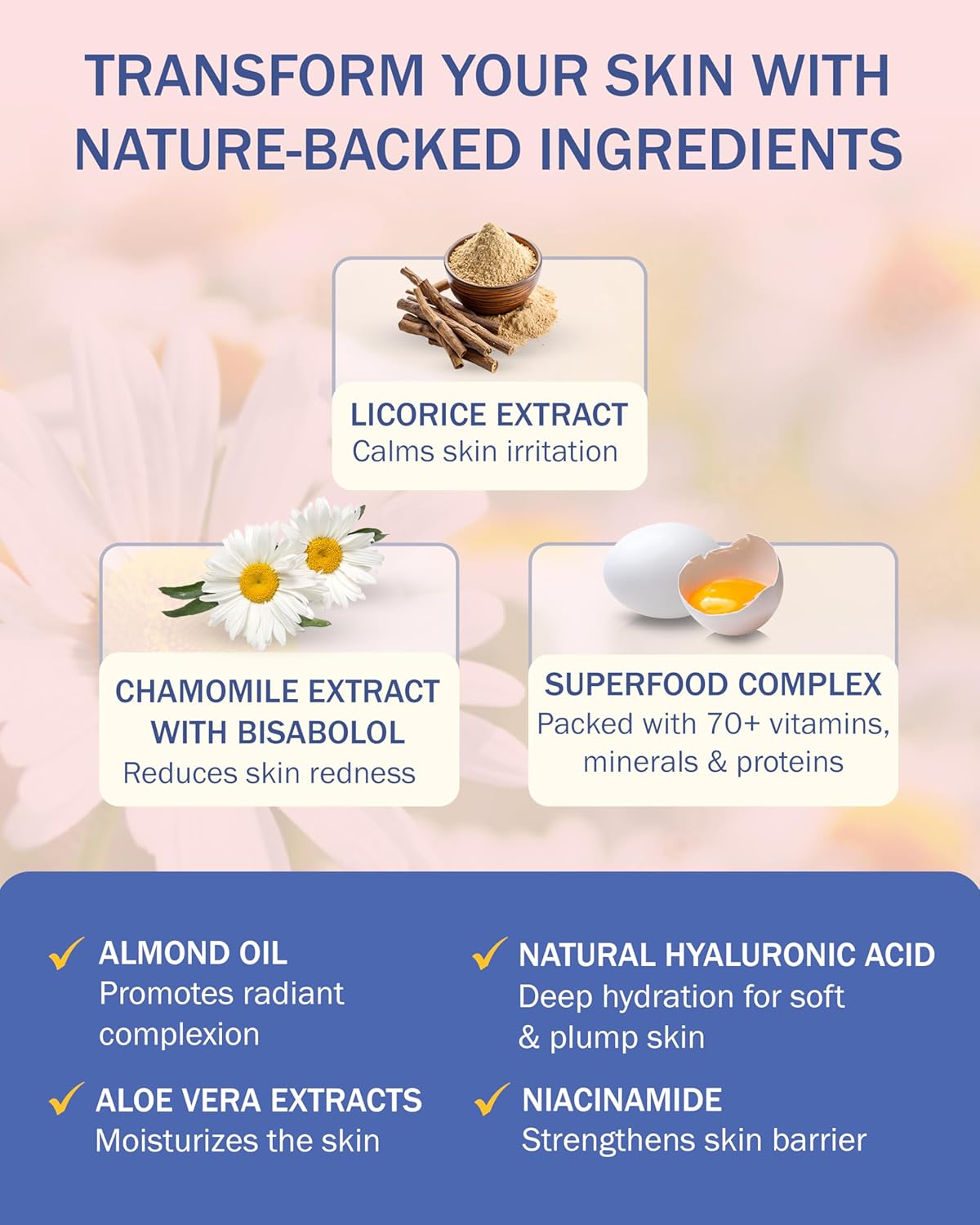 • Potent Natural Ingredients: Infused with licorice, chamomile extracts, aloe vera, and hyaluronic acid, our dry face moisturizer restore and strengthen the skin’s natural barrier for a lasting hydration and protection.