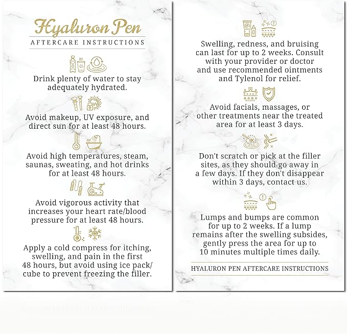 100 Pack - Premium Hyaluron Pen Lip Filler Aftercare Instructions Card 2 x 3.5" Accessories Supplies Kit Care - HP22A100_N