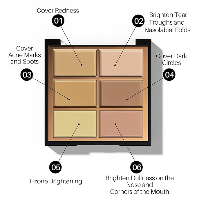 • Versatile and Full Coverage: Discover the power of FV 6-shade color corrector palette, designed to address various skin concerns like dark circles, redness, and acne. Achieve a flawless, natural look by blending the colors for enhanced coverage, highlighting your unique facial features.