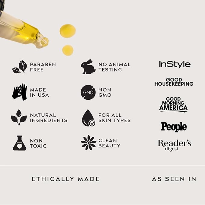 • FAST-ABSORBING, NON-GREASY FORMULA: Enjoy soft, nourished skin without a heavy feel. This oil-based face serum absorbs quickly and layers beautifully under makeup, making it a perfect daily moisturizer and glow-enhancing face primer in one.