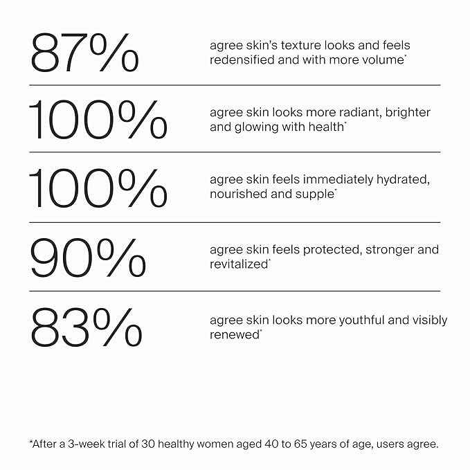 • VISIBLY REDENSIFIED SKIN: Improving skin texture from within helps fight off visible signs of aging and maintain a youthful-looking skin. The Day cream potent formulation has proven to deliver skin wrinkle and fine lines reduction of 15% after 8 weeks of daily morning application, based on randomized controlled clinical trial.