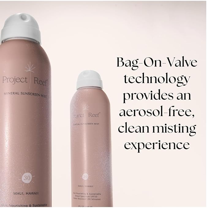 • Sustainable, Non-Aerosol Packaging - Our sunscreen mist is packaged in recyclable aluminum and utilizes non-aerosol BOV (Bag-on-Valve) technology for a sustainable and clean misting experience without harmful propellants. Each purchase from Project Reef removes 1 pound of plastic from the world’s oceans – the equivalent of 22 water bottles – through partner organizations.
