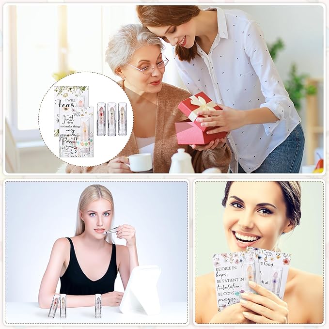 • Christian Lip Balm Set: the package includes not just 12 lip balms with flowers but also 12 inspirational quote cards and 1 roll tape, these elements combined make this an ideal and complete gift set, there are different styles to create different collocations
