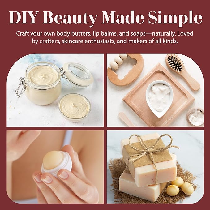• PERFECT FOR DIY SKINCARE: Ideal for making lotion bars, body butters, whipped shea butter blends, lip balms, soaps, and belly creams. Melts smoothly and mixes easily with other butters and oils like mango, shea, or coconut.
