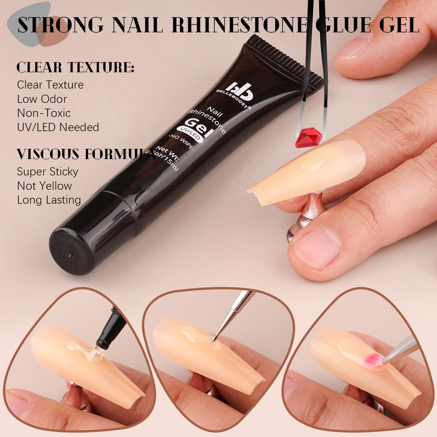 • đź’ŽADHESIVE GEL GLUE: The rhinestones glue gel uses a special, non-toxic and eco-friendly formula with strong tackiness, adhesion, and fluidity for easily applying decorations. It is a type of UV gel glue. After proper curing under a UV/LED lamp, the glue dries clear with superior bonding strength that can last a few weeks without falling off. With the designed tip, you can easily and conveniently apply the glue to the nail bed or the surface of false nails.