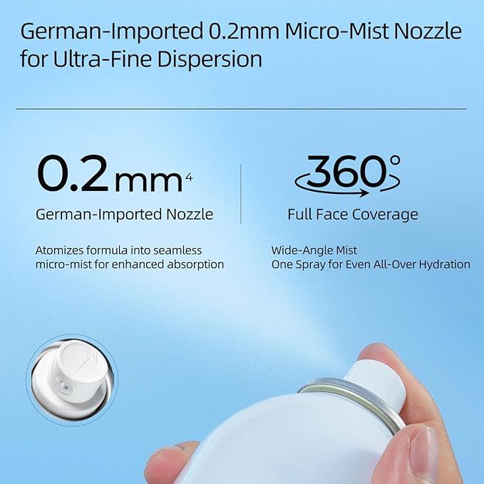 • The 0.22mm nozzle delivers a fine face spray mist hydrating that gently nourishes the skin, boosting hydration and improving the skin’s natural moisture retention.