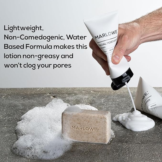MARLOWE. Skin Care Set, No. 122 Facial Scrub 6 oz & No. 123 Facial Moisturizer 6 oz with Natural Extracts & Antioxidants, Cleanses, Exfoliates, Hydrates & Soothes