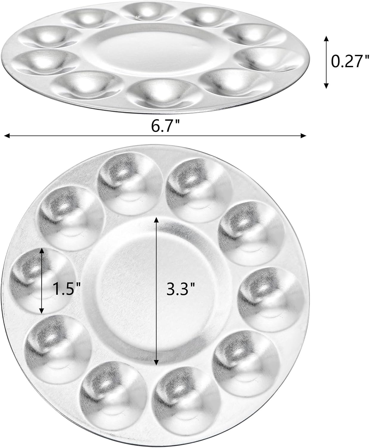 • Package Details: You will receive 10 Pcs paint tray palettes, measuring 6.7" D x 0.27" H. Every metal paint palette features 10 wells, each with a diameter of 1.5", while the central reservoir measures 3.3"