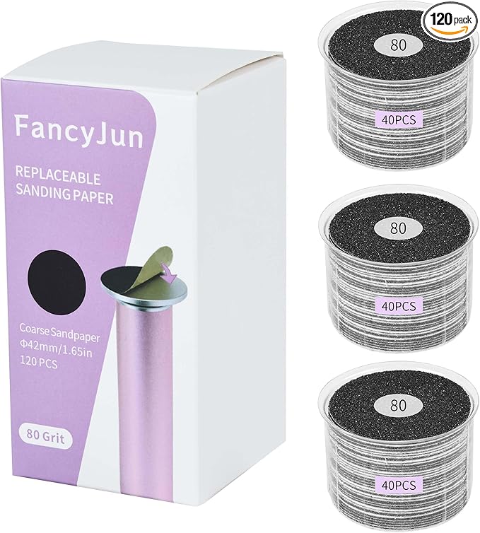 • Long-Lasting 120pcs/Set – Durable coarse grit sandpaper discs for extended use on dry, rough skin.