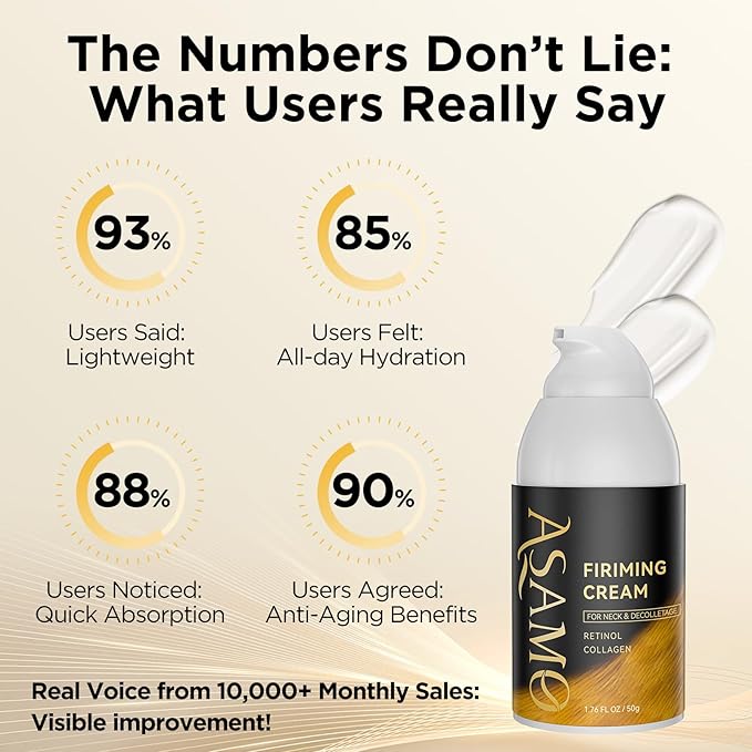 • EXPERTLY FORMULATED FOR MAXIMUM EFFECTIVENESS: Developed with precision, our lightweight, luxurious neck cream—engineered for targeted neck tightening and lifting—is expertly balanced to tighten, firm, and improve the elasticity of the delicate neck and décolleté area (outperforming generic skin tightening cream for body in this specific zone). With continuous use, it provides day-long hydration, leaving the skin visibly lifted, smooth, and nourished—rivaling the results of premium firming neck cream and neck creams for tightening and firming.