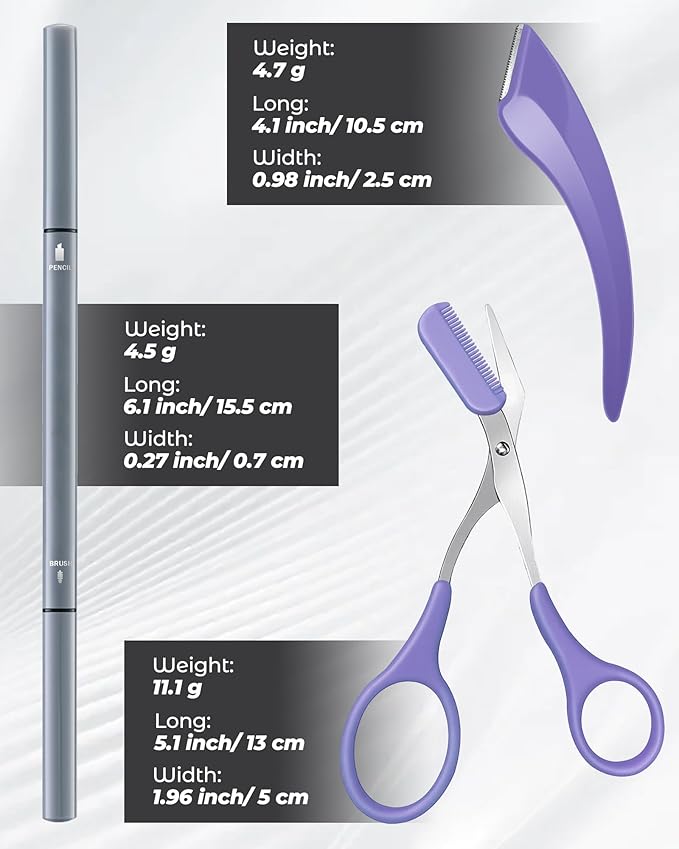 • ALL-IN-1 SALON-GRADE EYEBROW KIT​: Upgrade your brow routine with our all-in-one salon-grade kit. It includes 12 no-sharpen microblading pencils, a stainless steel curved razor with 0.1mm safety guard, and an eyebrow trimmer set. Trim, define, and fill easily, achieving natural, salon-quality brows. Ideal for beginners and pros alike