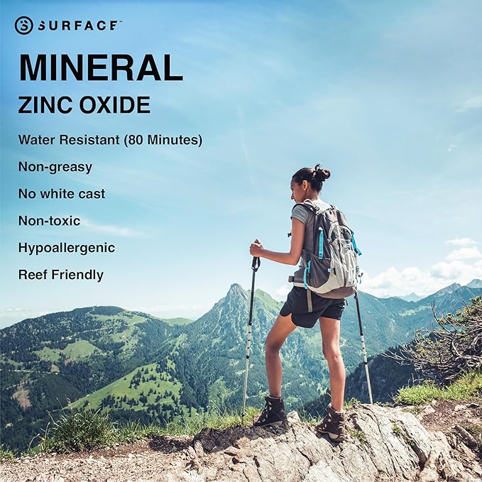 Surface Mineral Sunscreen Face Stick SPF 60, Lightweight Non-Nano Zinc Oxide Formula, Reef Friendly, Broad Spectrum UVA UVB Protection, Water Resistant Sun Care for 80 Minutes, Tinted, 0.5oz